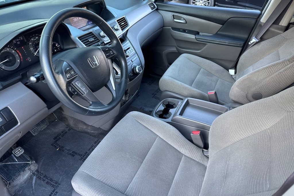 Wide-mode adjustable 2nd-row seats -inc: multi-function center seat, "walk-in" feature, armrests, head restraints, Warning lights -inc: low-fuel, low-oil pressure, door/tailgate open, passenger-side airbag-off, Vehicle Stability Assist (VSA) w/traction control, Variable pwr rack & pinion steering, Variable Cylinder Management (VCM), Tri-zone automatic climate control -inc: humidity control, air filtration, Tire pressure monitoring system, Tilt & telescopic steering wheel -inc: wheel-mounted audio, phone & cruise controls, Side-impact door beams, Security alarm system. This Honda Odyssey has a strong Gas V6 3.5L/212 engine powering this Automatic transmission.